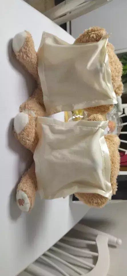 Fabricado con materiales de alta calidad no tóxicos e hipoalergénicos, el osito tiene un tacto extra suave y seguro para el contacto con la piel delicada de los bebés.