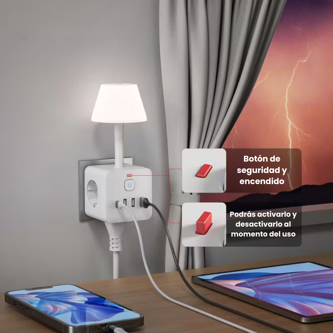 Fabricado con materiales resistentes al fuego para ofrecer durabilidad y seguridad a largo plazo. Su estética minimalista combina con cualquier estilo, desde un setup gamer hasta un dormitorio. Útil, elegante y perfecto como regalo tecnológico.
