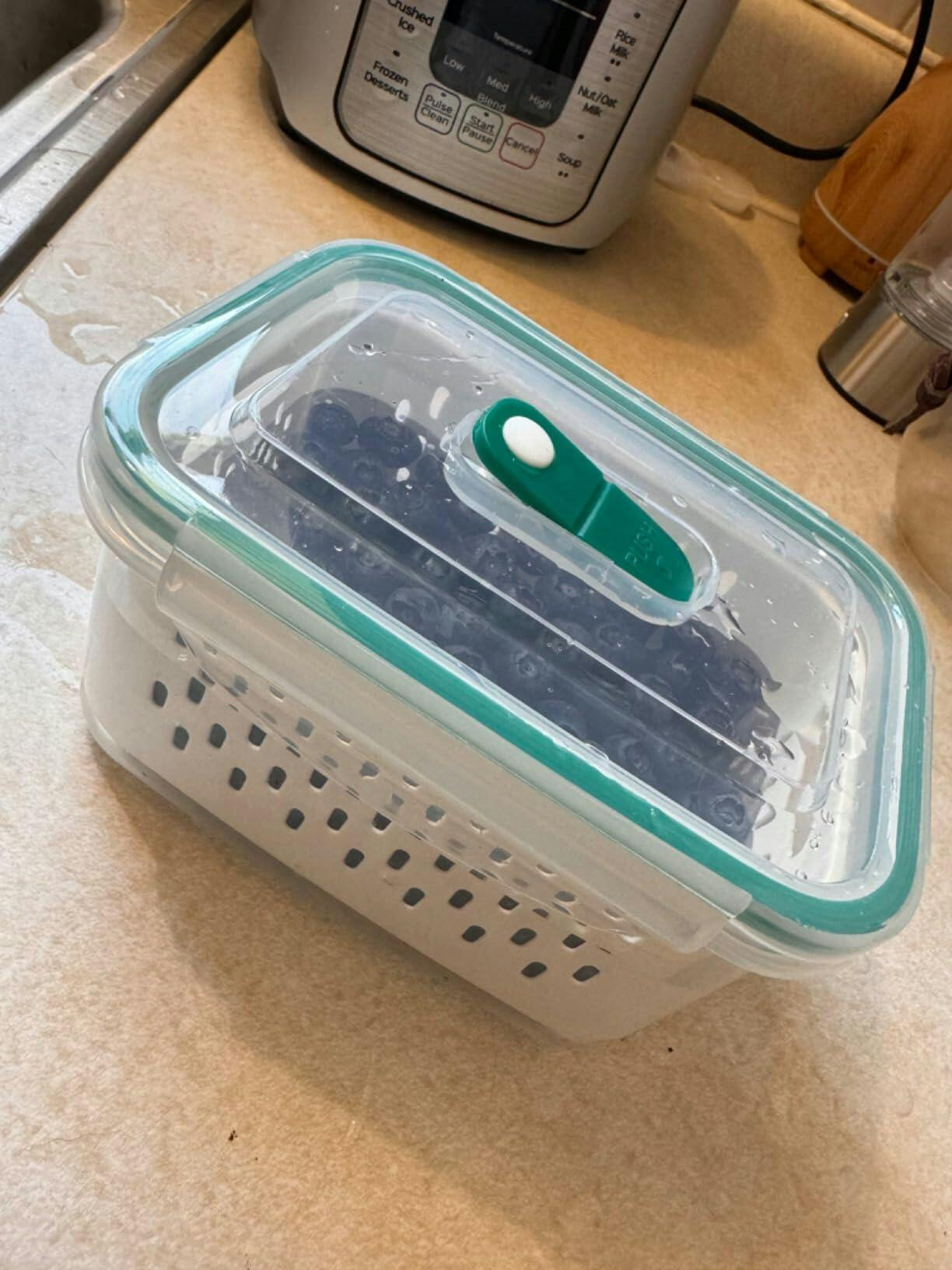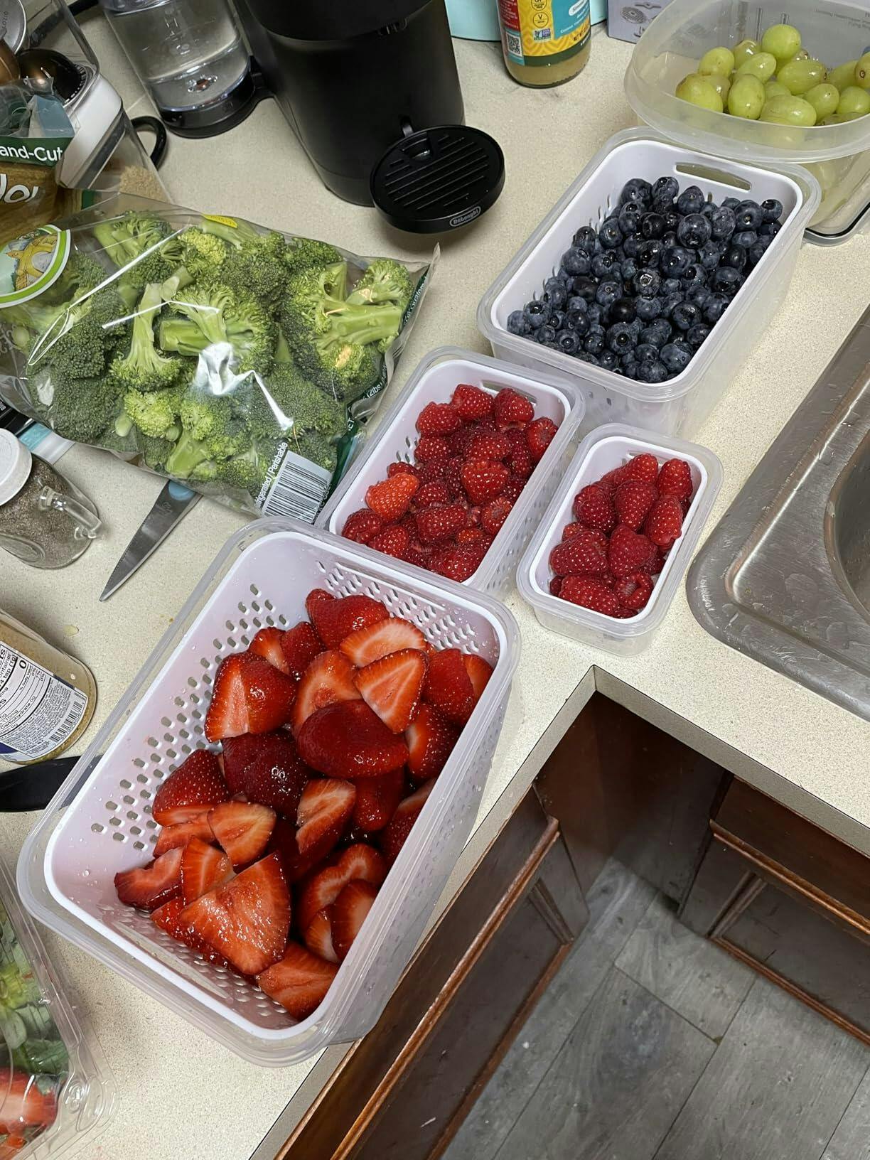 Gracias a sus cestas extraíbles, puedes lavar frutas, verduras y alimentos directamente dentro del recipiente, escurrirlos y guardarlos sin pasos adicionales.