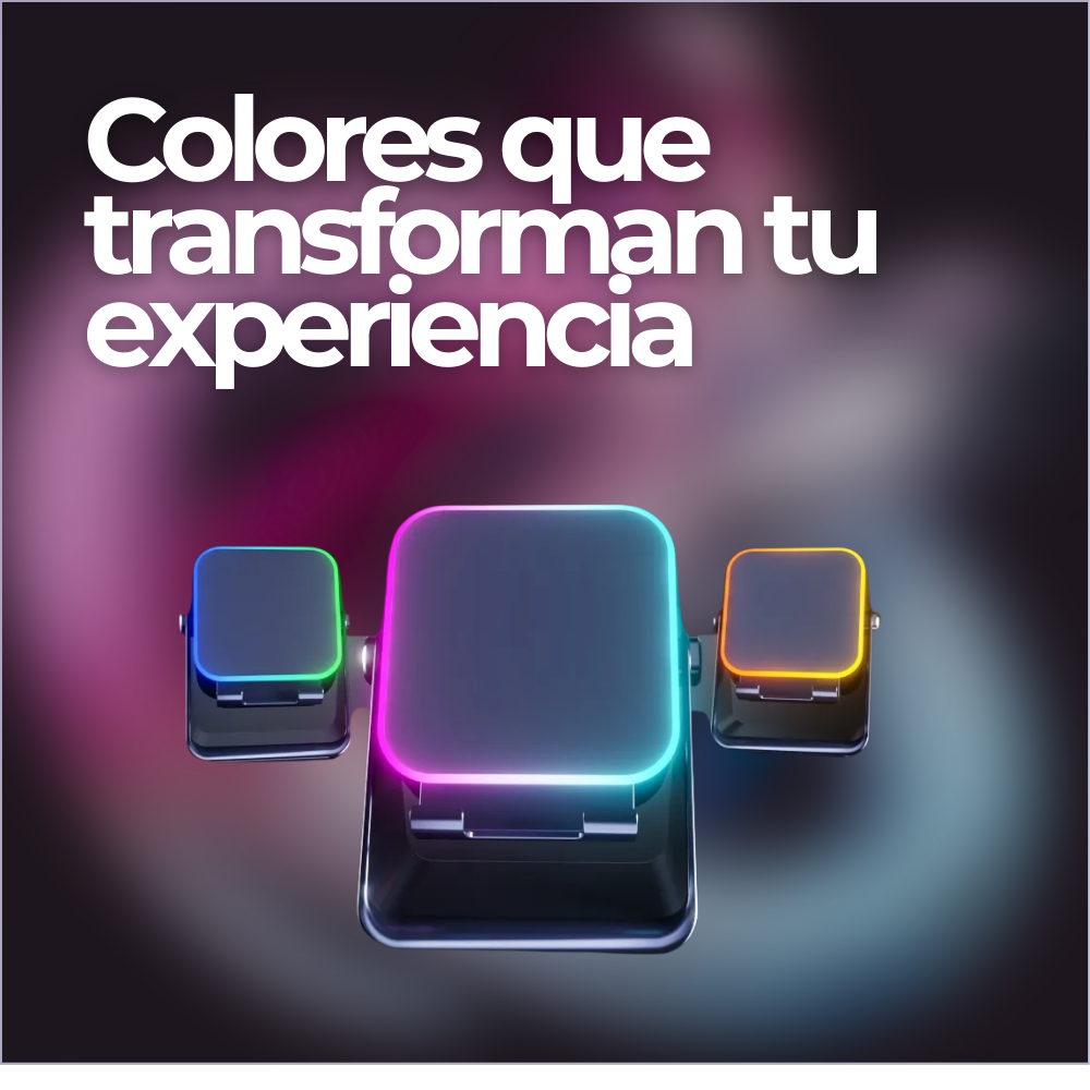 La luz ambiental RGB dinámica crea una atmósfera relajada o vibrante según el momento. Perfecta para dormitorio, escritorio o rincón creativo.